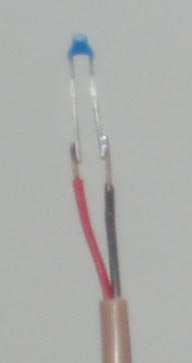 The new thermistor sensor was prepaired by soldering it to the wire that I removed when I drilled